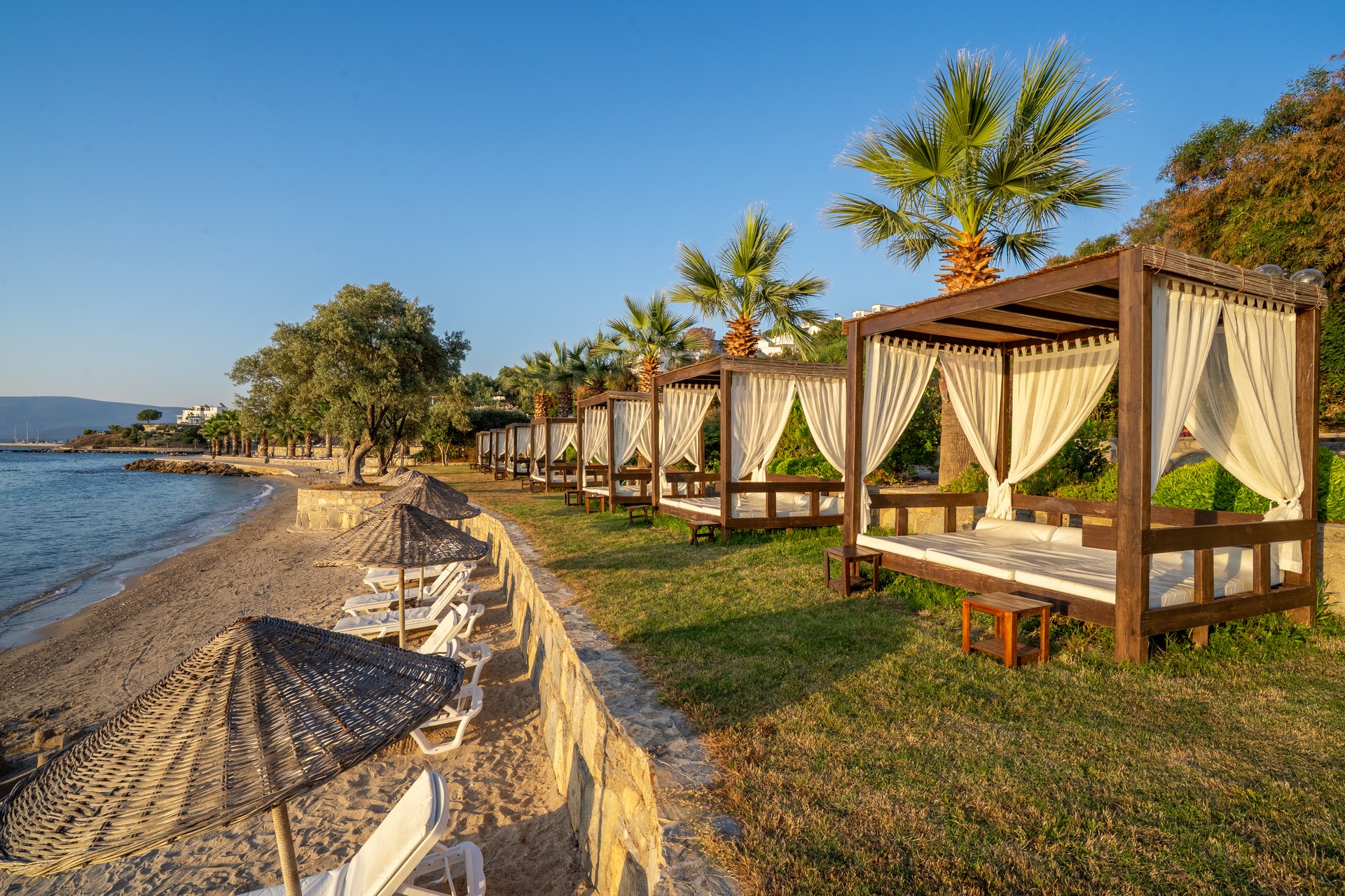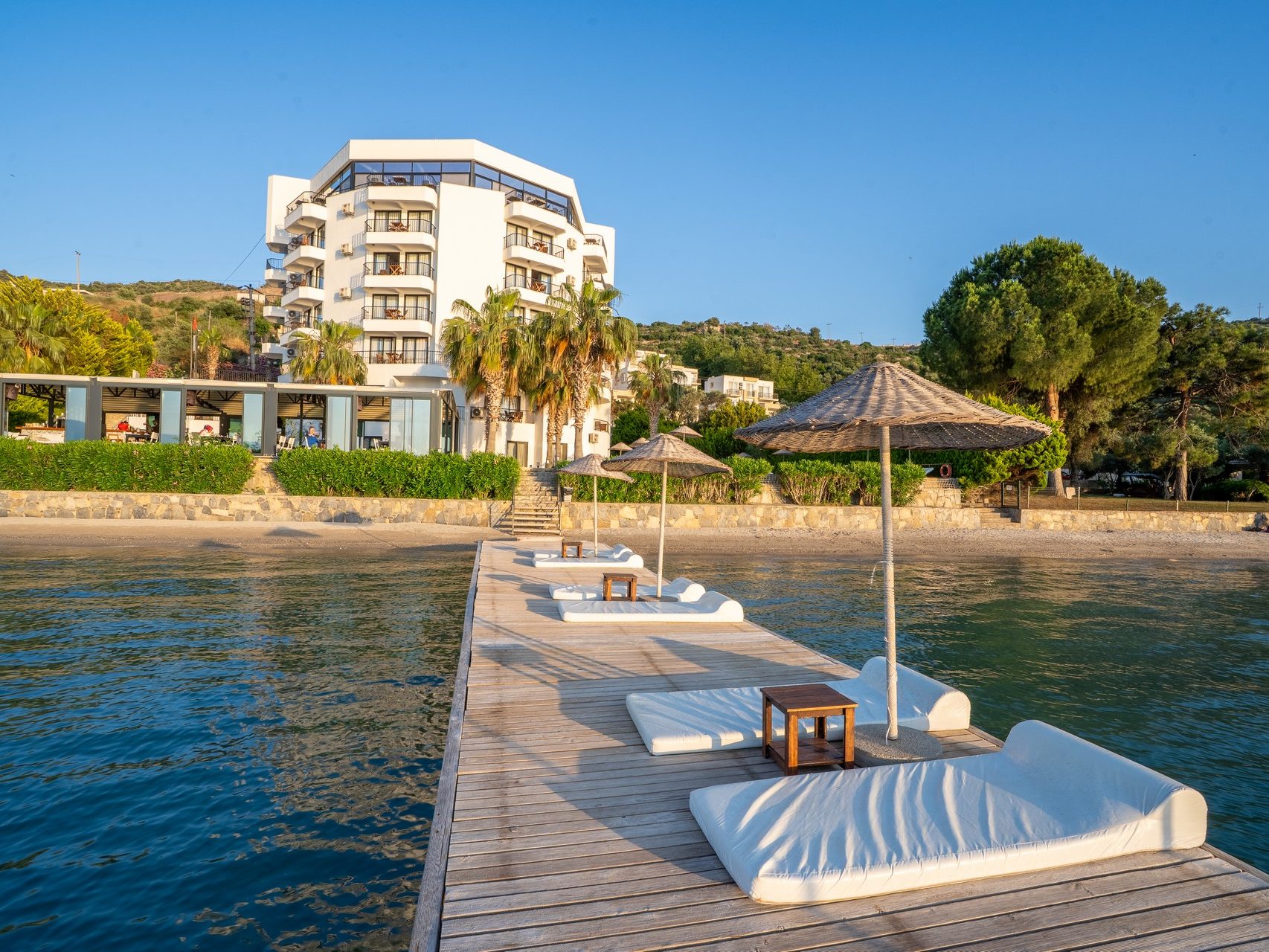 Altın kumların Ege Denizi’nin berrak sularıyla buluştuğu Med-Inn’in özel plajında gözlerden uzak bir cennete adım atın. Konuklarımıza özel olan bu özel sığınak, günlük hayatın koşuşturmacasından dingin bir kaçış sunmaktadır. Zarif şemsiyelerin gölgelediği konforlu şezlonglarda dinlenirken dalgaların rahatlatıcı sesini ve hafif deniz meltemini kucaklayın.